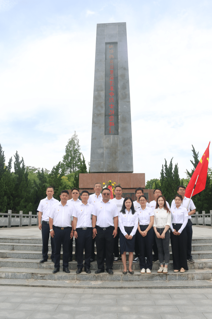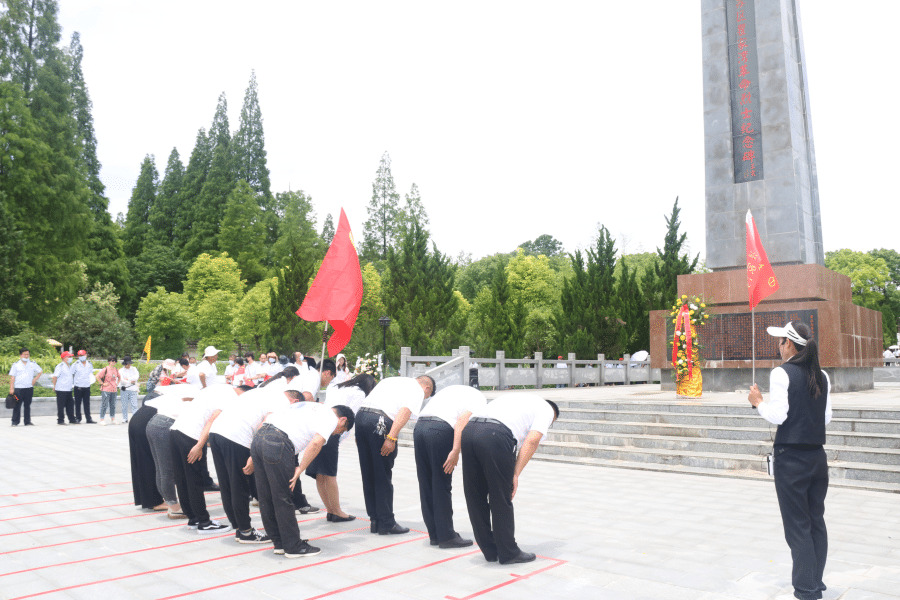 ? ? ? 向人民英雄敬獻花籃儀式,在瞿家灣烈士陵園紀念碑前舉行。全體黨員深深鞠躬,懷著敬仰之情,向革命烈士默哀。